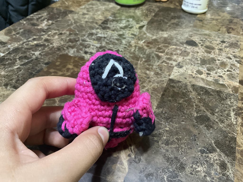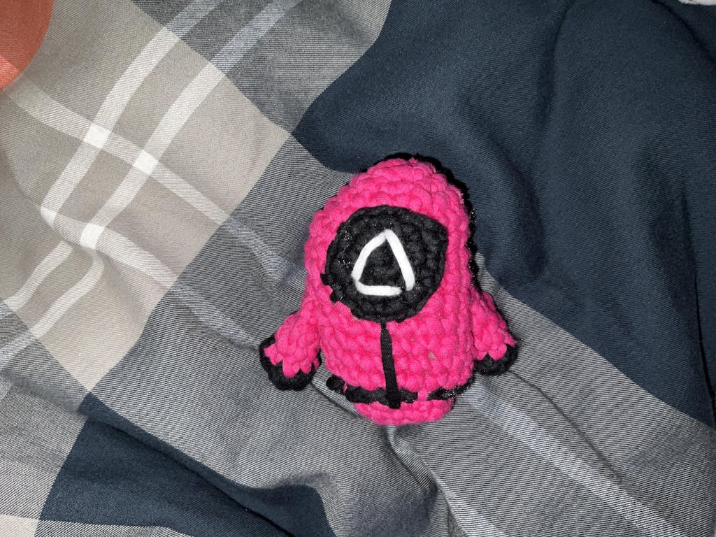 Iconic jumpsuit? Spooky mask? This wooblified Red Guard from Squid Game has it all—including a custom hook to match.