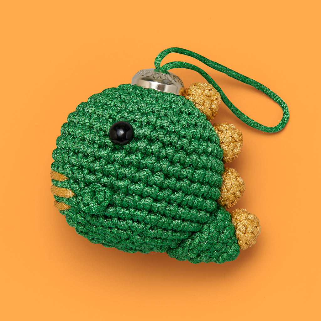 • 1 Fred the Dino Ornament Beginner+ Crochet Kit with custom crochet hook