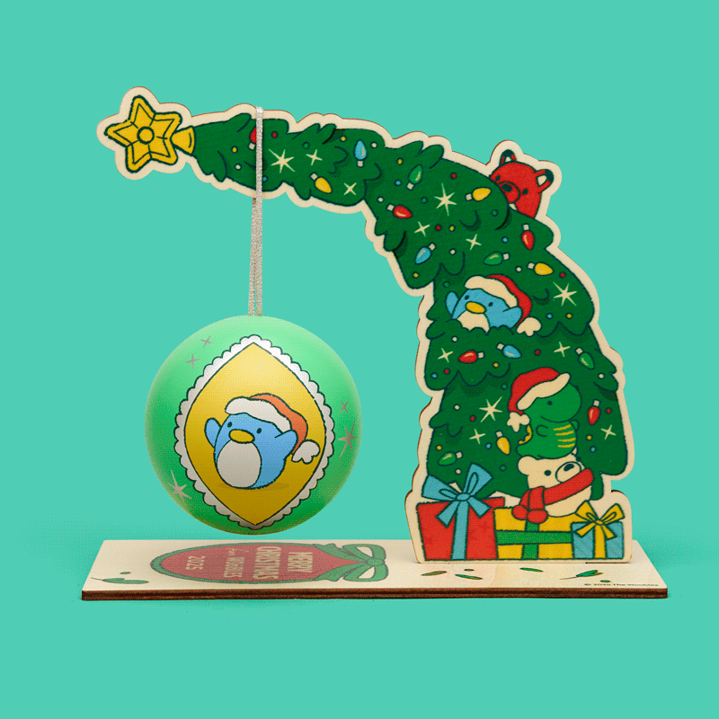 Made entirely of glitter yarn and finished off with lil’ metal caps, these Wooble ornaments are merry and bright—literally! Not only is each one paired with its own custom hook, but they also come bearing a tree-mendous number of snow-mazing extras: a special bonus collector’s hook, a wee woobly collector’s tin, a very merry ornament stand, and an exclusive metal ornament for 2025! So if decking the halls is your happy place, then don’t delay, ’cause you and this bundle were definitely orna-ment to be!