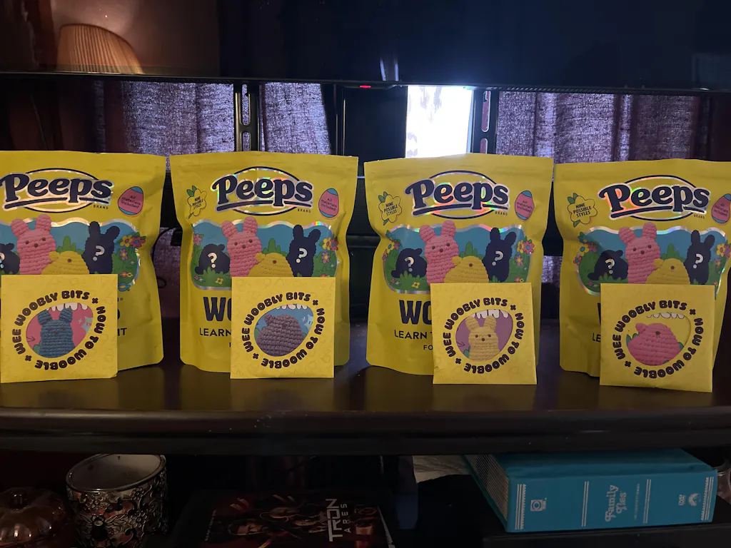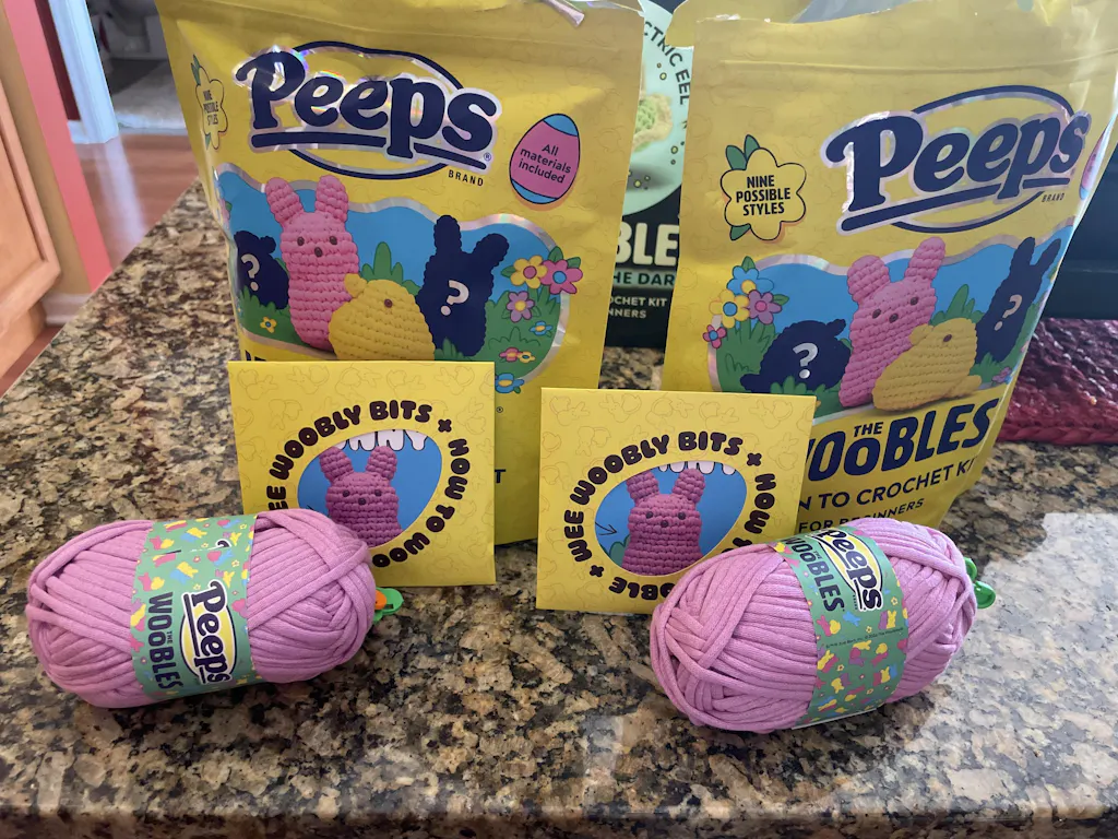 Since each fluffy friend is designed for beginners, you’ll also be cheering PEEP PEEP hooray—even if you’re a wooblin’ newbie. Not only do you get plenty o’ Easy Peasy Yarn™ and our simple step-by-step videos, but you’re also treated to a special collector’s hook plus a super exclusive egg-stra to hold all your bits and bobs. So let’s PEEPS® things real and hop to it as we wooble up this PEEP-tacular new pal!